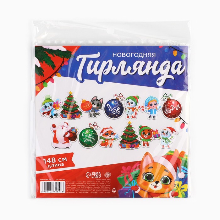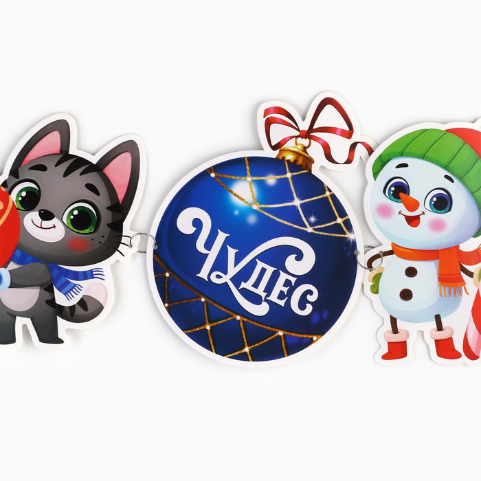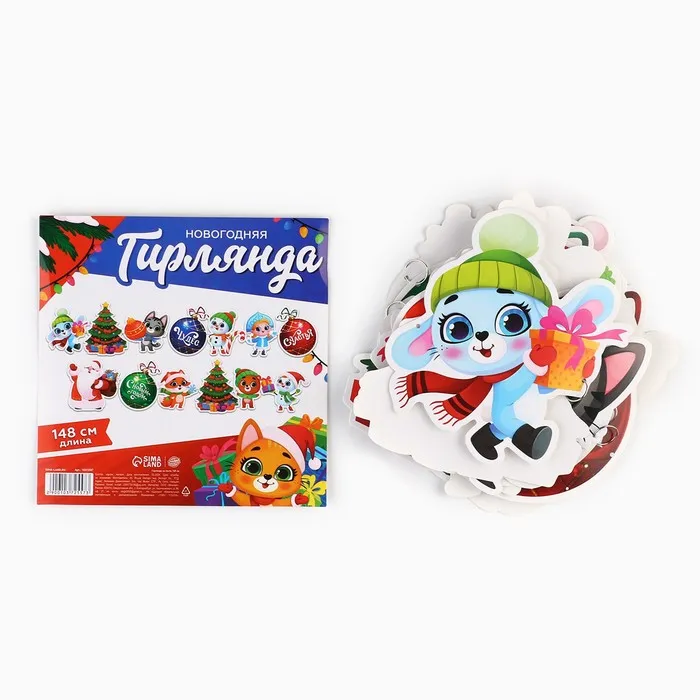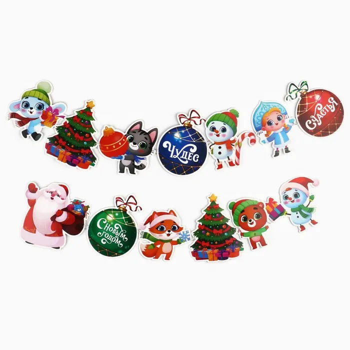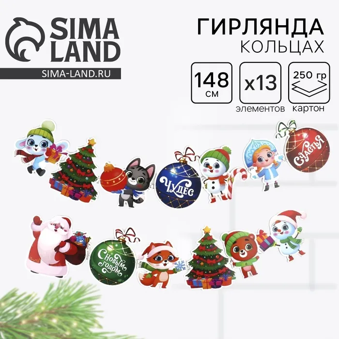 Гирлянда на кольцах новогодняя «Милые зверюшки», на Новый год, длина 148 см