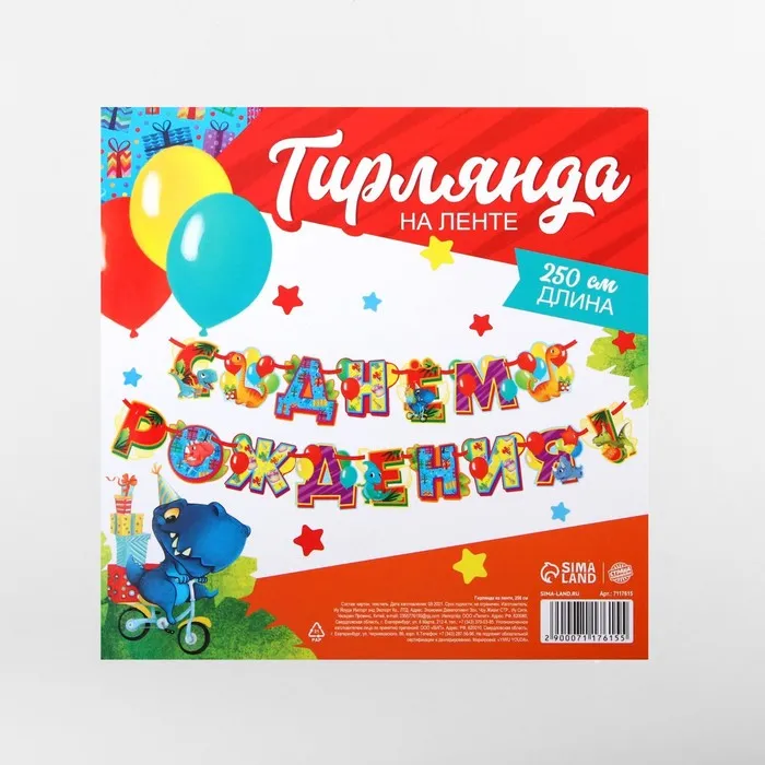 Гирлянда на ленте «Диномир», длина 250 см — Характеристики