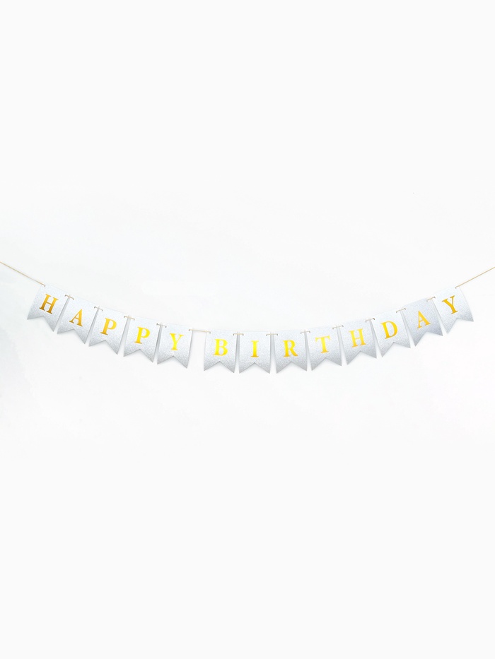 Гирлянда на ленте «Happy Birthday» серебряная