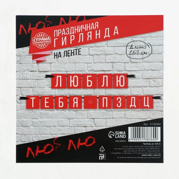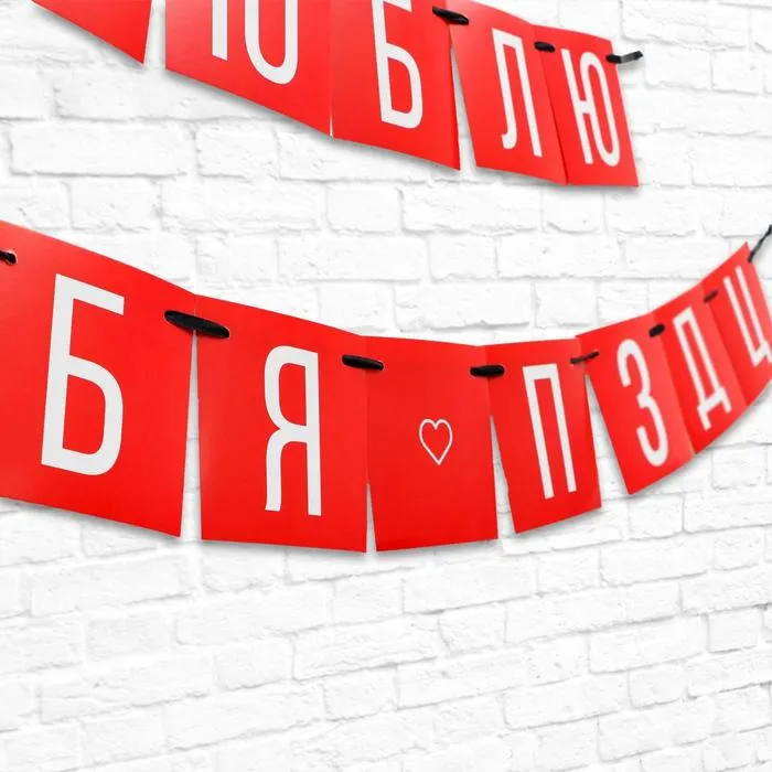 Длина гирлянды - 168 см., плотность картона - 200 гр/кв.м., размер карточек - 11 х 11 см