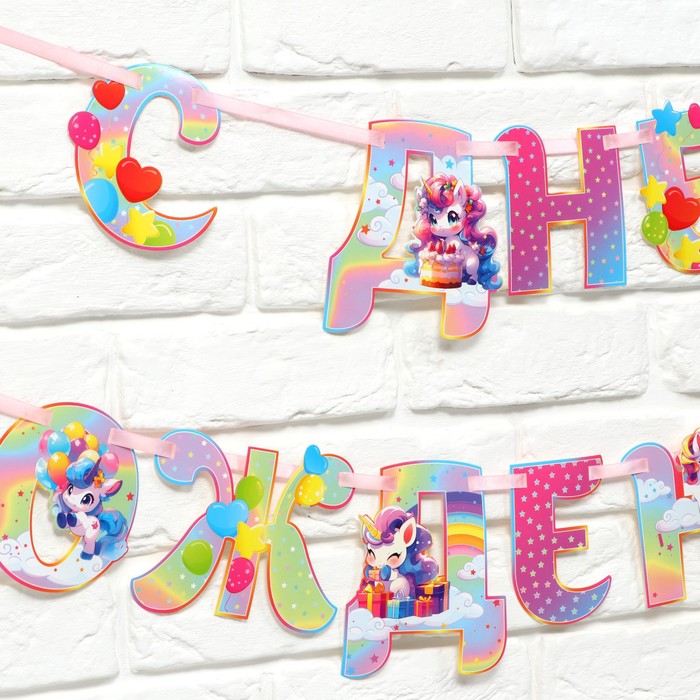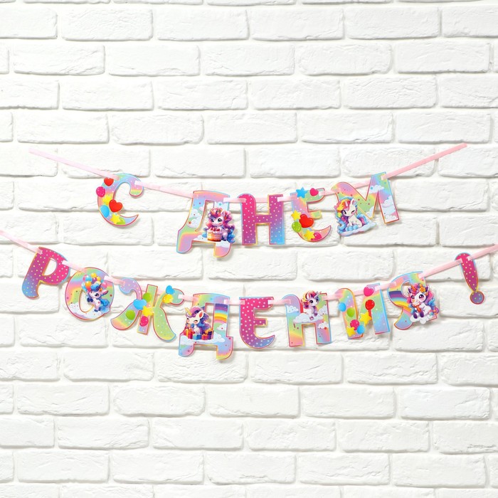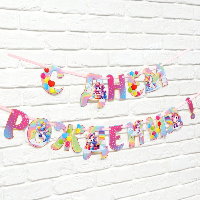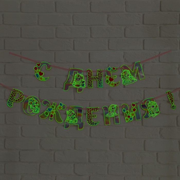 Гирлянда на ленте люминисцентная «С Днем Рождения», единорог, 250 см