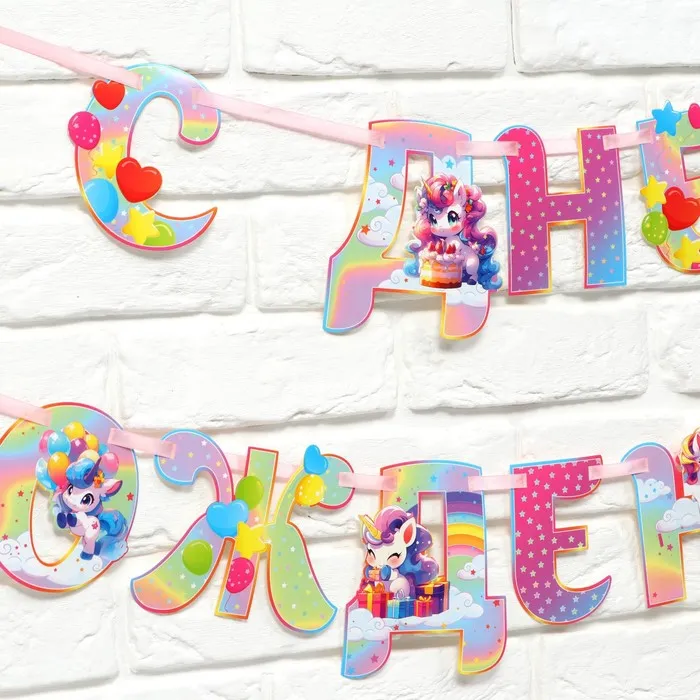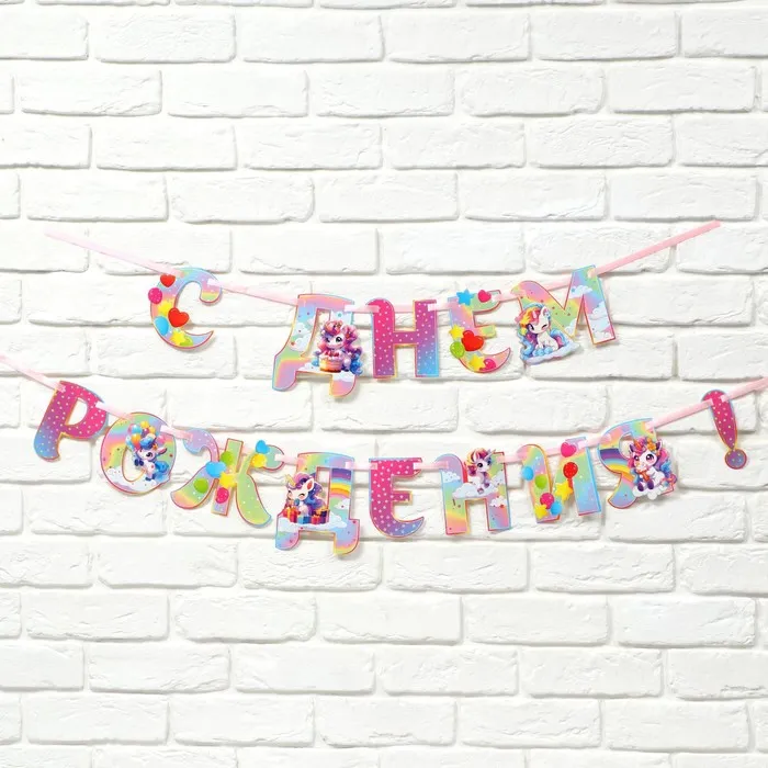Гирлянда на ленте люминисцентная «С Днем Рождения», единорог, 250 см — Характеристики