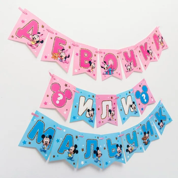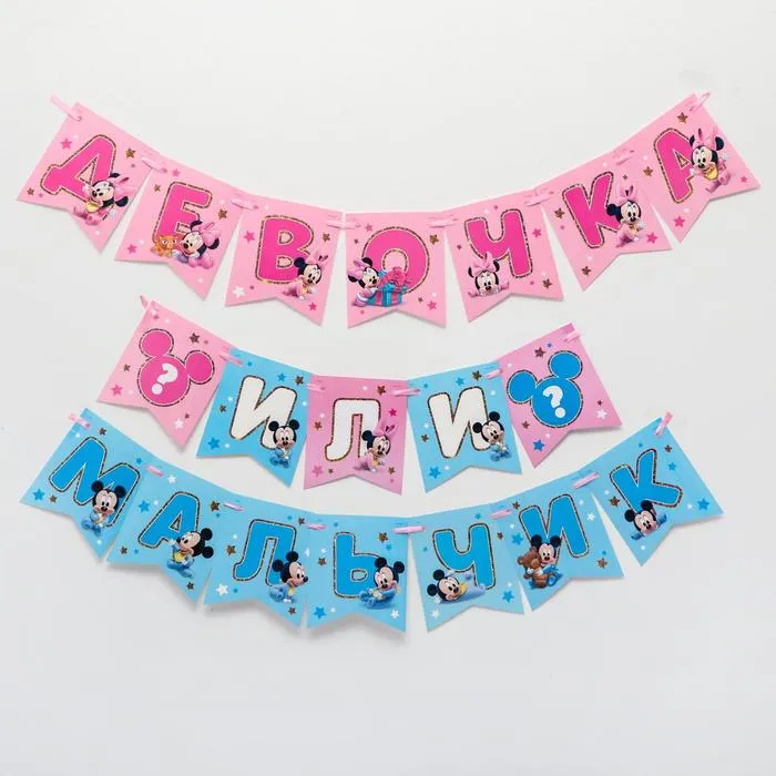 Гирлянда на ленте на гендер пати «Девочка или мальчик», длина 3 м, Дисней беби — Характеристики