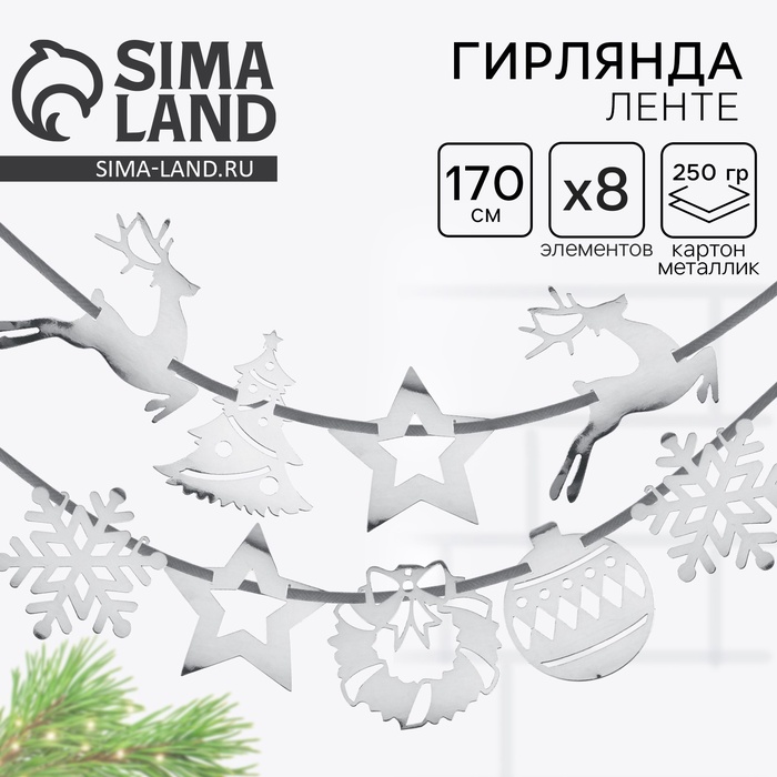 Гирлянда на ленте «Новогодняя», на Новый год, серебро — Характеристики