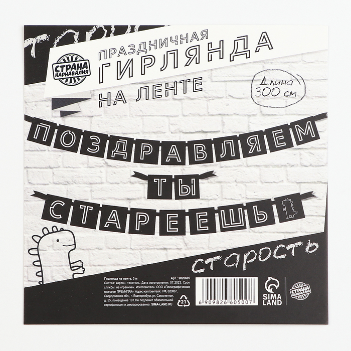 Гирлянда на ленте «Поздравляем, ты стареешь», длина 264 см — Характеристики