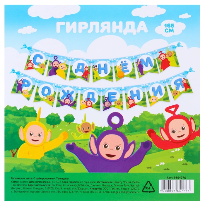 Гирлянда на ленте «С Днем Рождения», длина 165 см, Телепузики — Характеристики