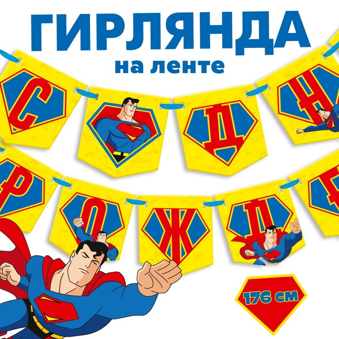 Гирлянда на ленте «С днем рождения», длина 176 см, Супергерой — Характеристики