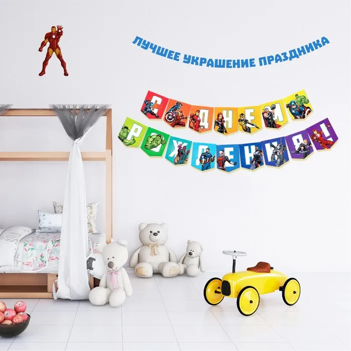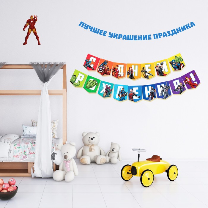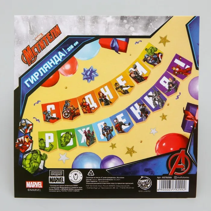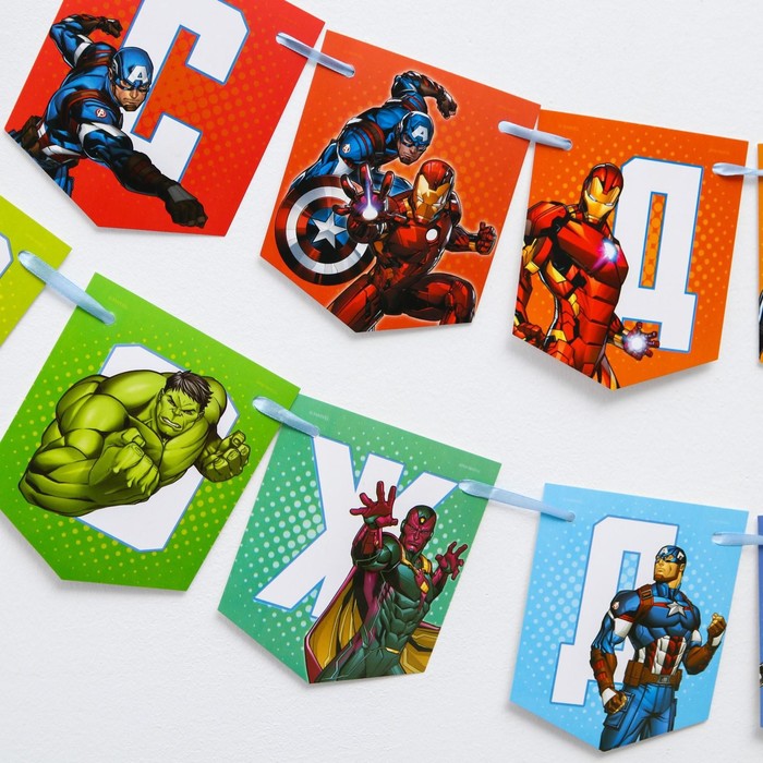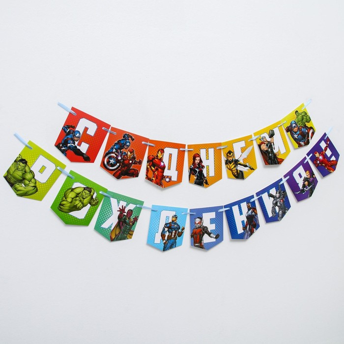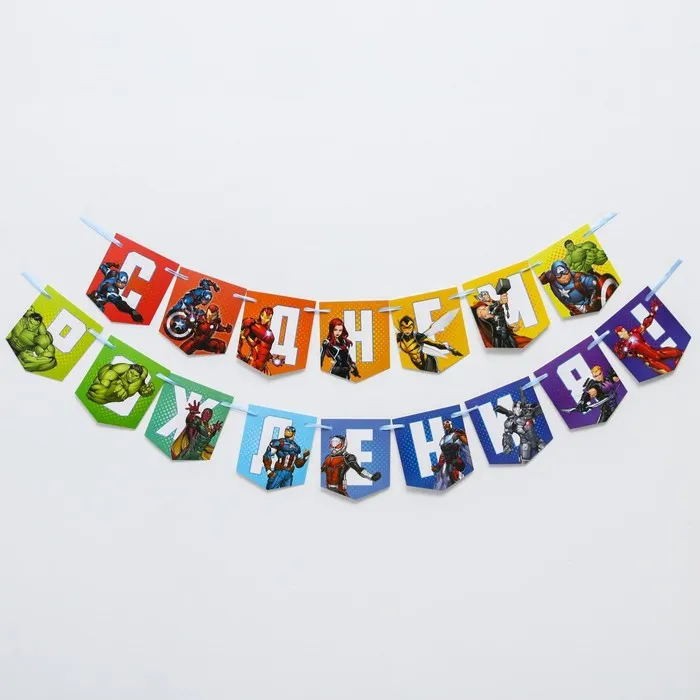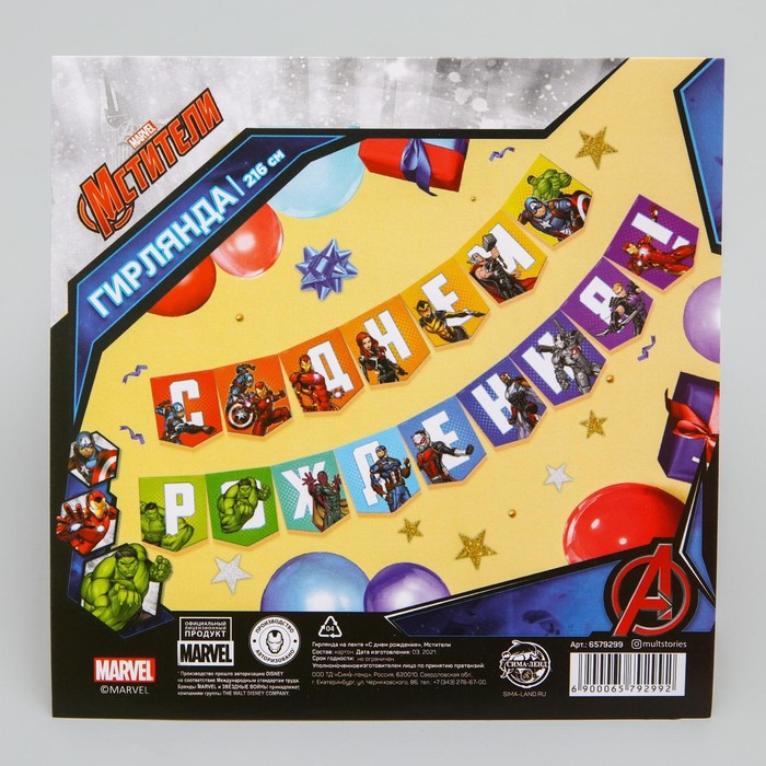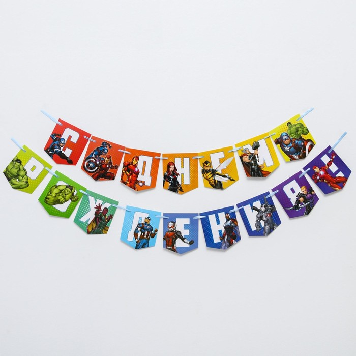 Гирлянда на ленте «С Днем Рождения», длина 216 см, Мстители — Характеристики