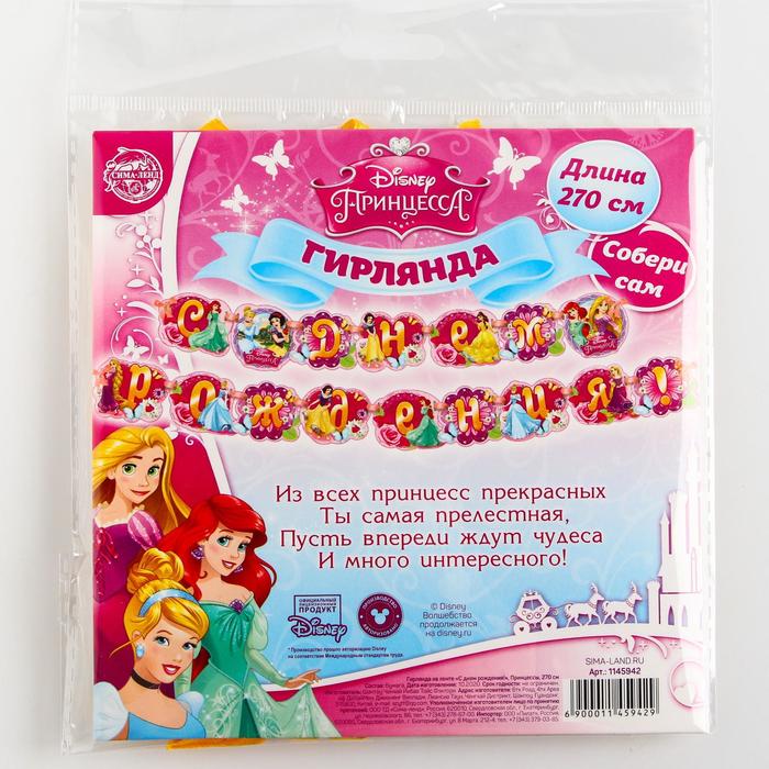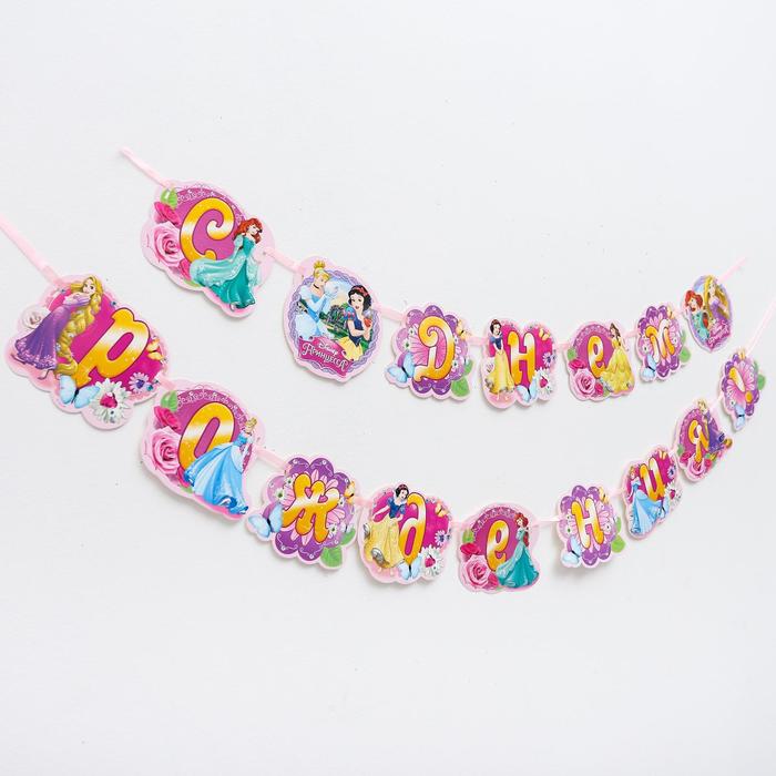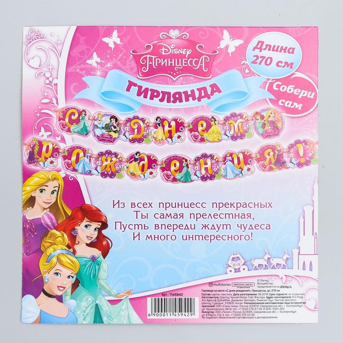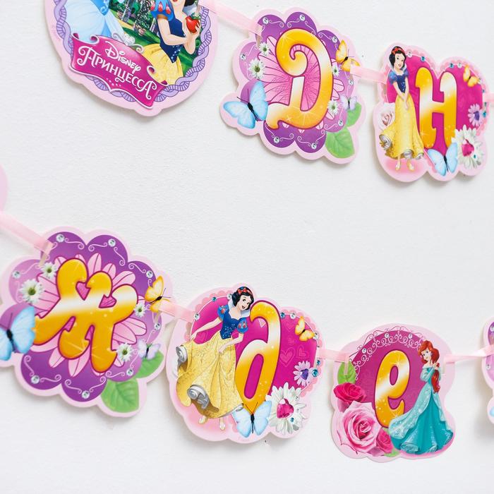 Гирлянда на ленте «С Днем Рождения!», длина 270 см, Принцессы