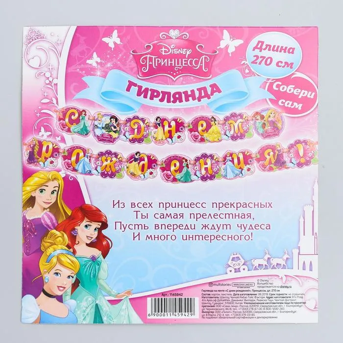 Гирлянда на ленте «С Днем Рождения!», длина 270 см, Принцессы — Характеристики