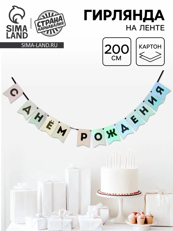 Гирлянда на ленте «С Днем Рождения», голография — Характеристики