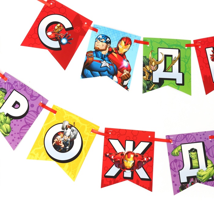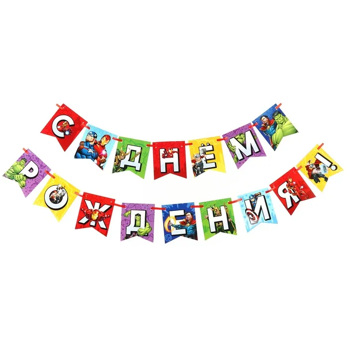 Гирлянда на ленте «С Днем Рождения», Мстители, 176 см — Характеристики