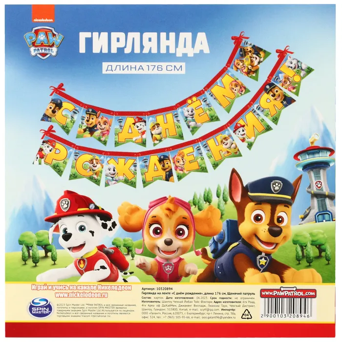 Гирлянда на ленте «С Днем Рождения», Щенячий патруль, 176 см — Характеристики