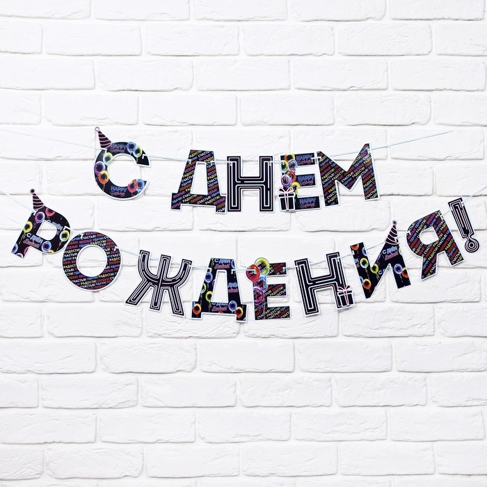 Гирлянда на ленте «С Днем Рождения!», синяя, длина 250 см — Характеристики
