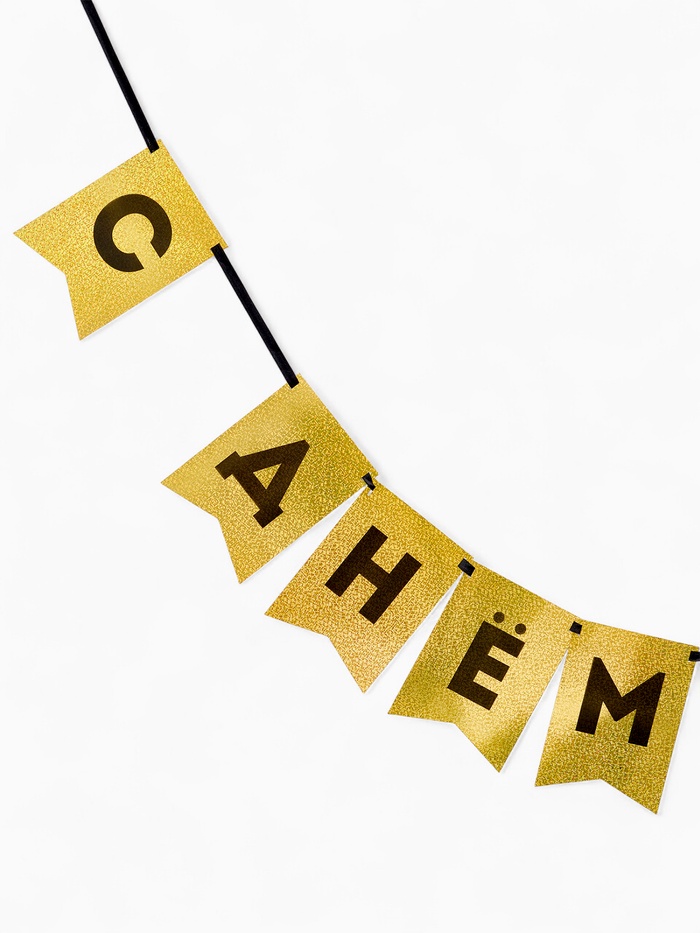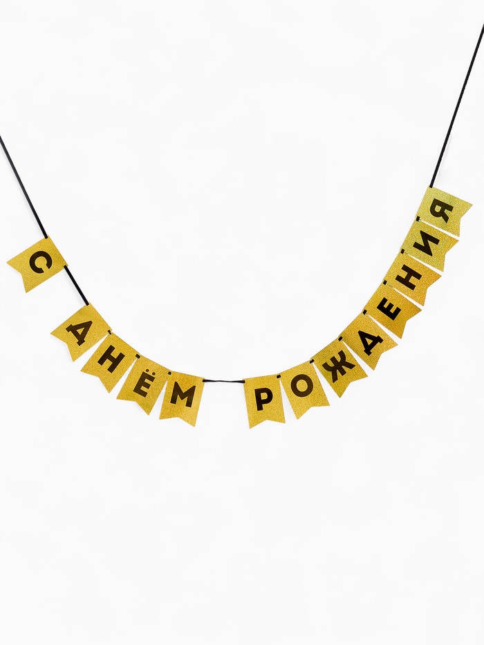 Гирлянда на ленте «С Днем Рождения», золотой картон с эффектом
