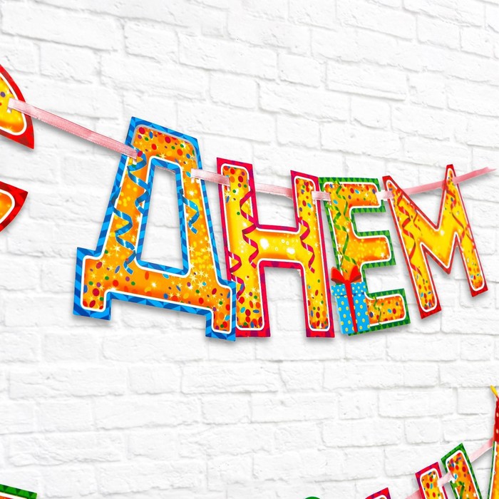 Гирлянда на ленте «С Днём Рождения!», блёстки, длина 250 см — Характеристики