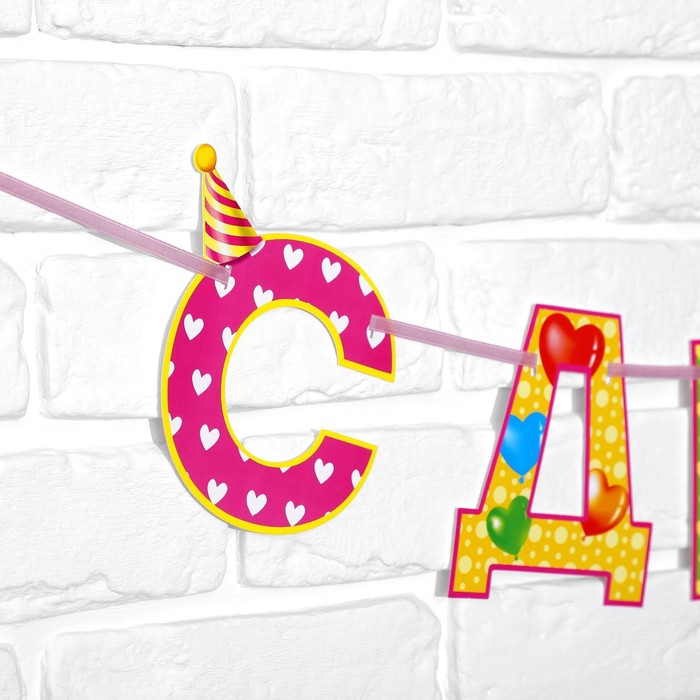 Гирлянда на ленте «С Днём Рождения!», девочке, длина 250 см — Характеристики