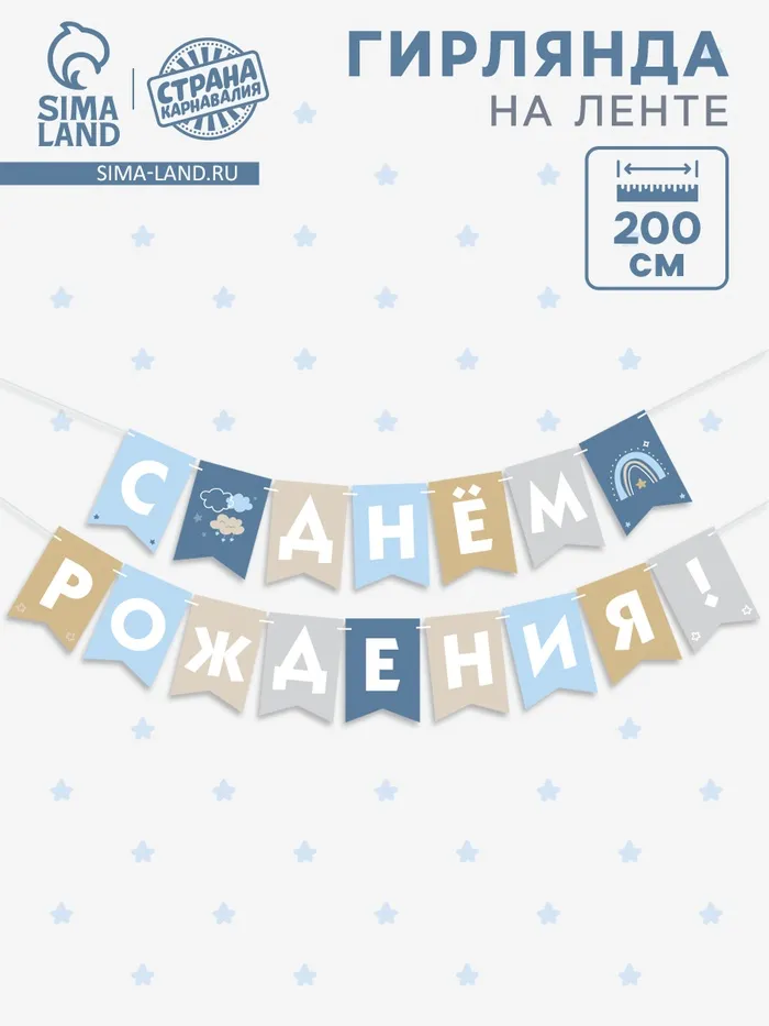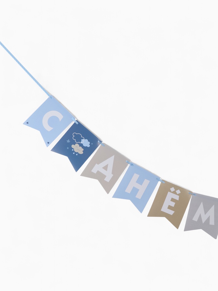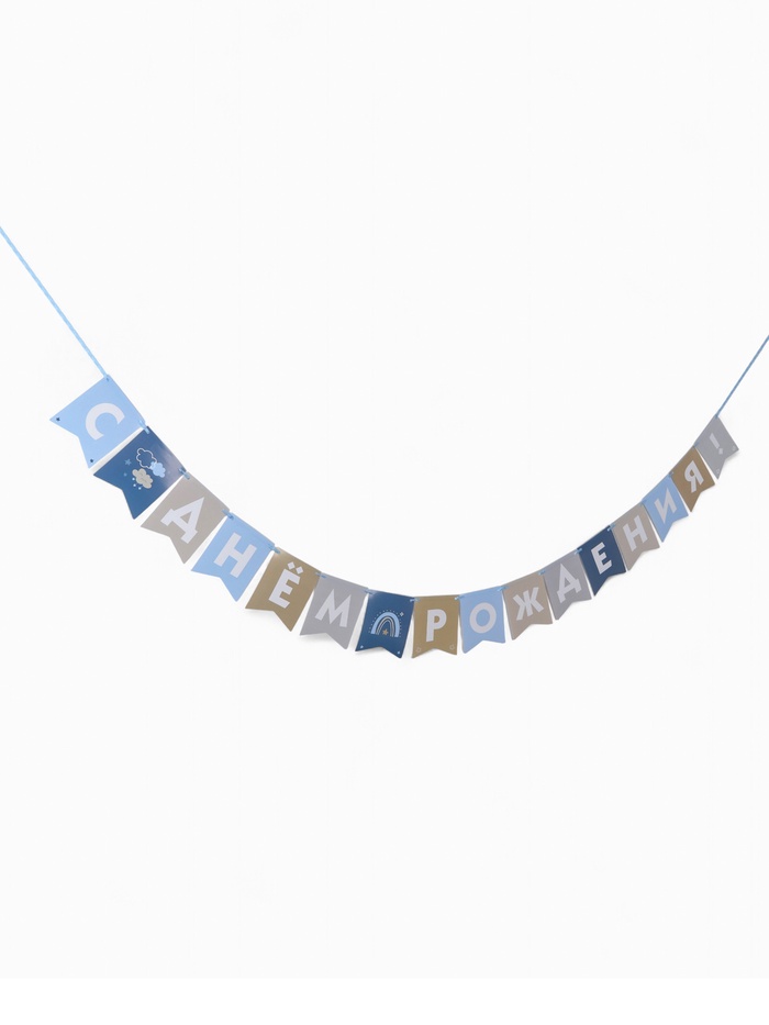 Гирлянда на ленте «С Днём Рождения!», голубой нюд, 200 см — Характеристики