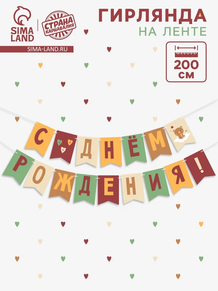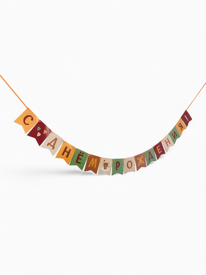 Гирлянда на ленте «С Днём Рождения!», оранжевый нюд, 200 см — Характеристики