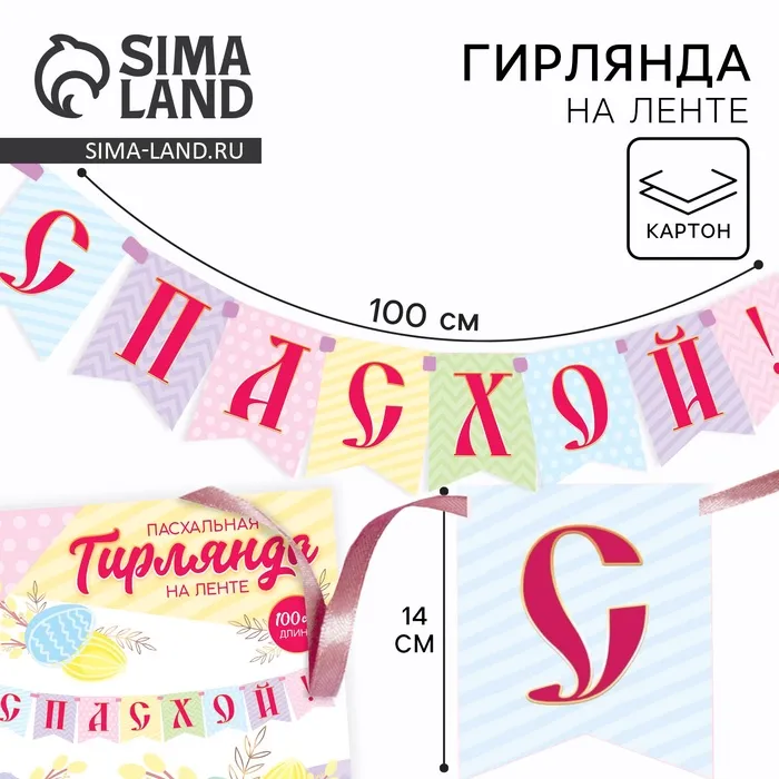 Гирлянда на ленте «С Пасхой!», 100 см.