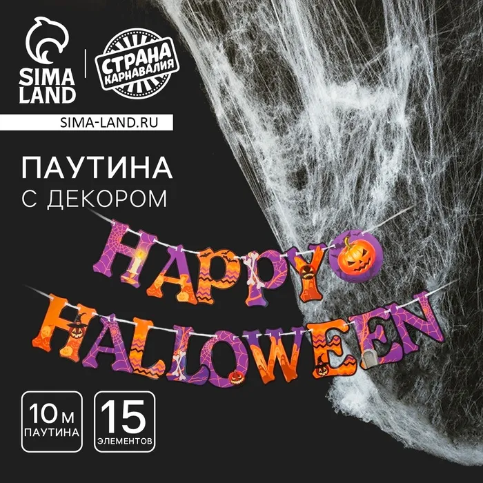 Гирлянда на ленте с паутиной Happy Halloween, на Хеллоуин — Характеристики
