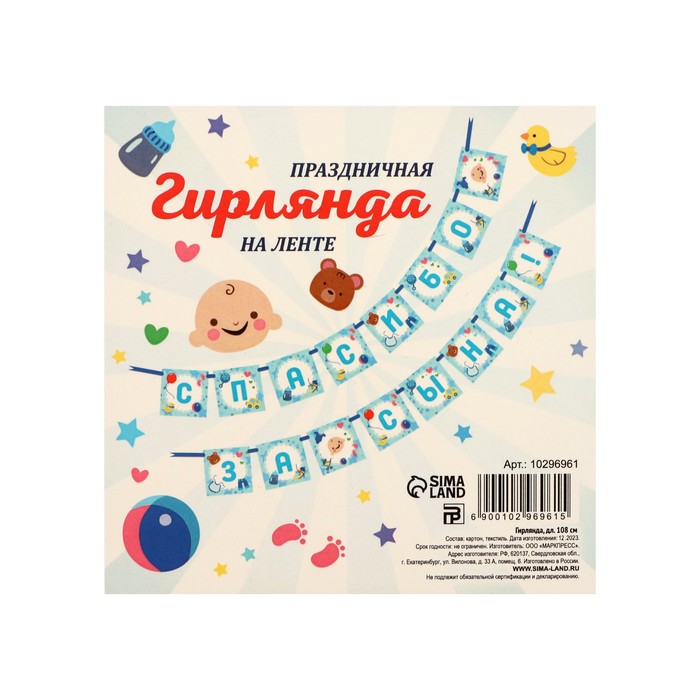 Гирлянда на ленте «Спасибо за сына!», 215 см — Характеристики