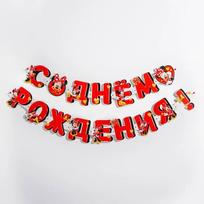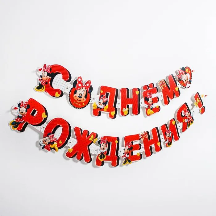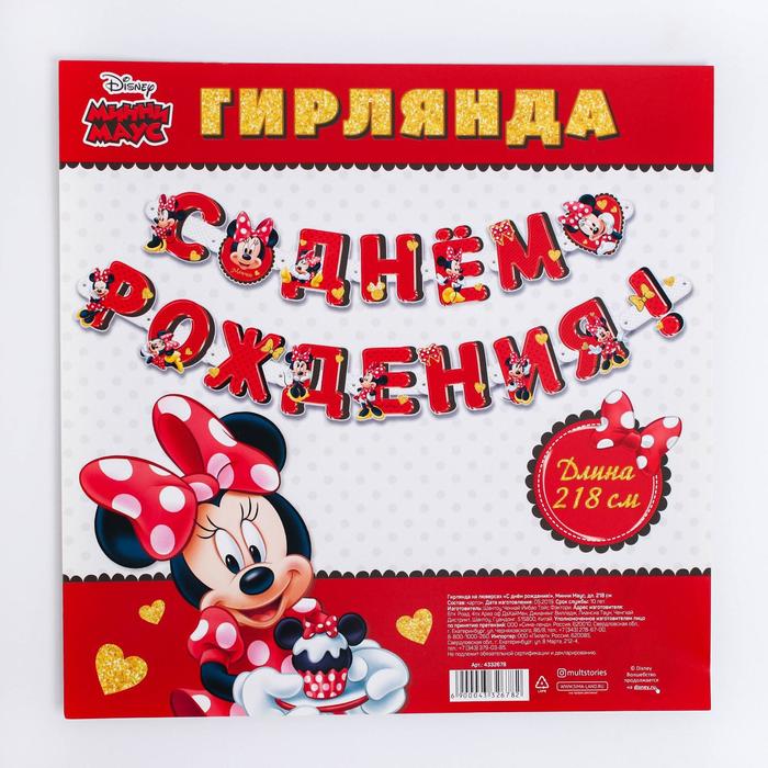 Гирлянда на люверсах «С Днем рождения!», длина 218 см, Минни Маус — Характеристики