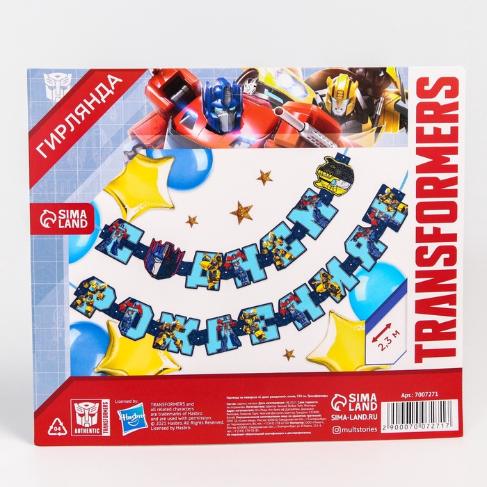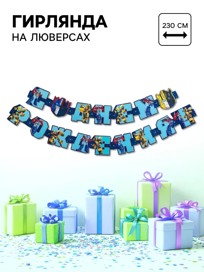Гирлянда на люверсах «С Днем Рождения!», Трансформеры, дл. 230 см, синяя — Характеристики