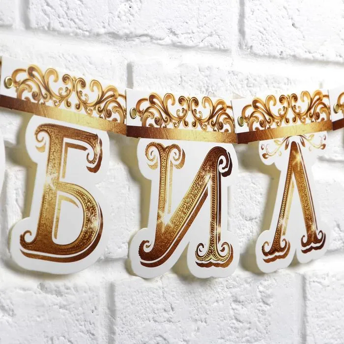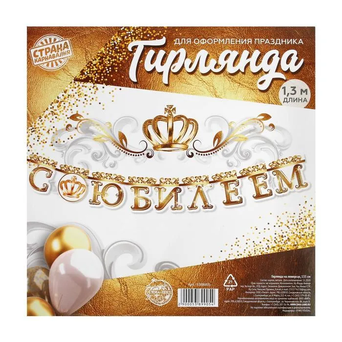 Длина гирлянды – 135 см., плотность картона – 250 гр/кв.м., размеры букв – 15 х 14 см.