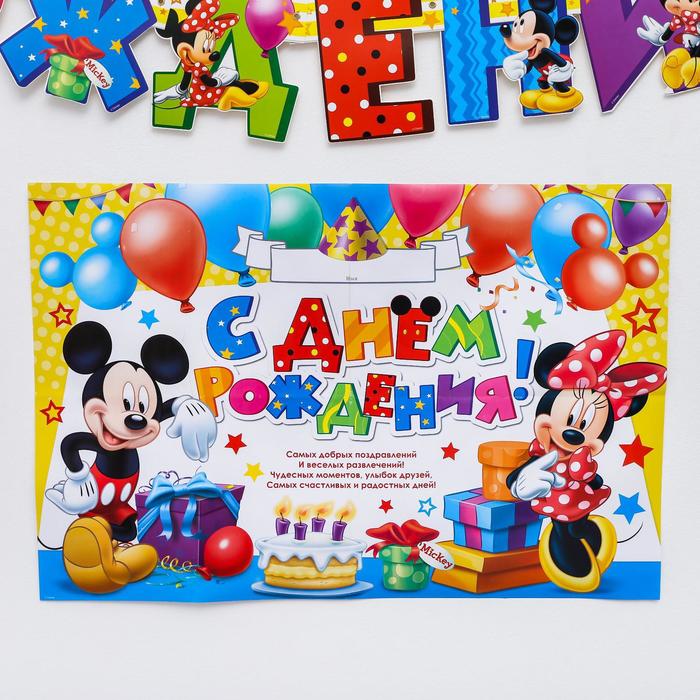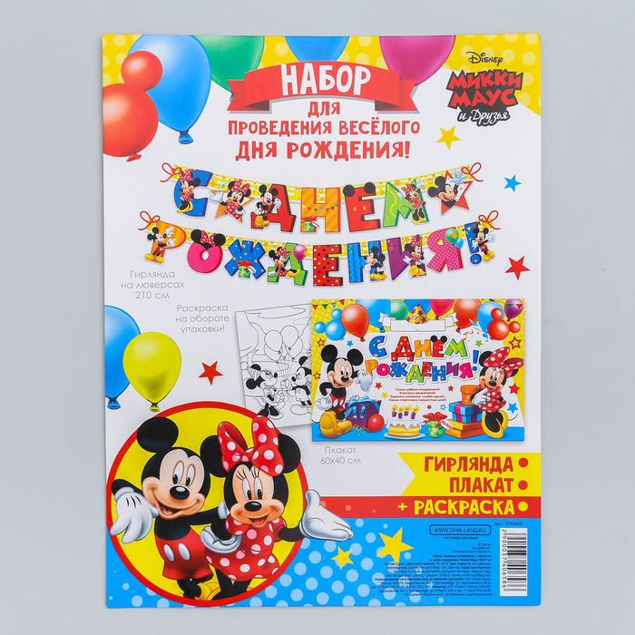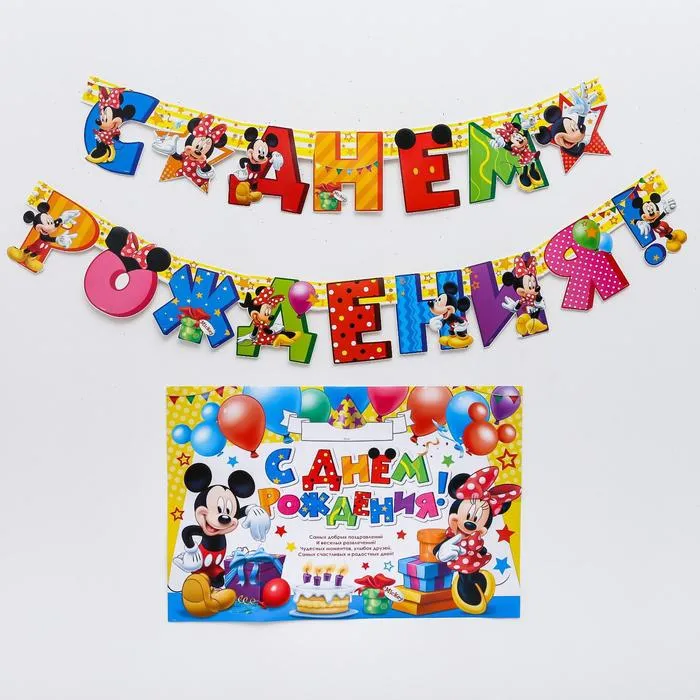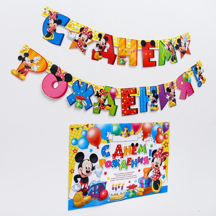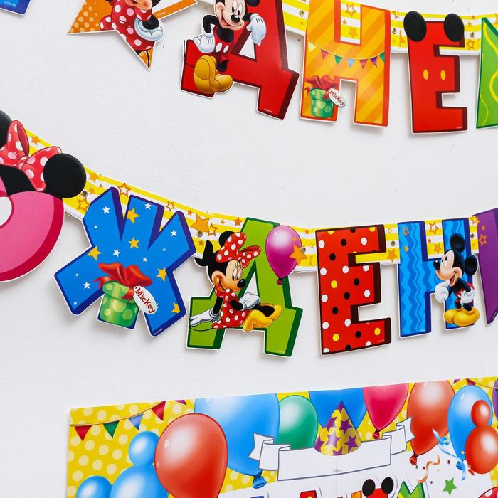 Гирлянда на люверсах с плакатом «С Днем Рождения», длина 210 см, Микки Маус — Характеристики