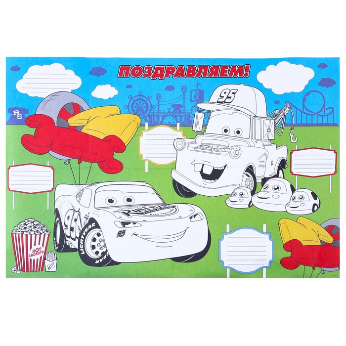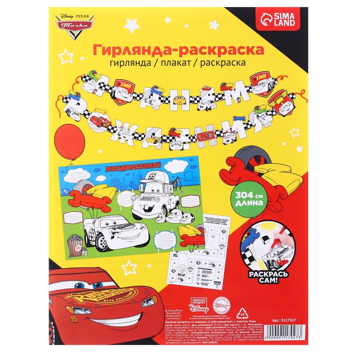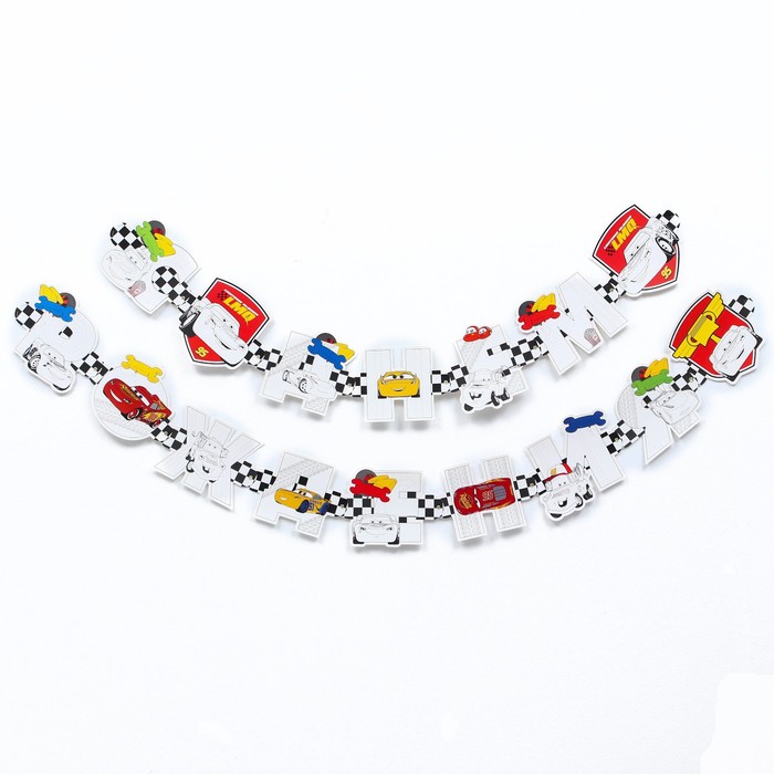 Гирлянда на люверсах с плакатом «С Днем Рождения», длина 304 см, Тачки — Характеристики