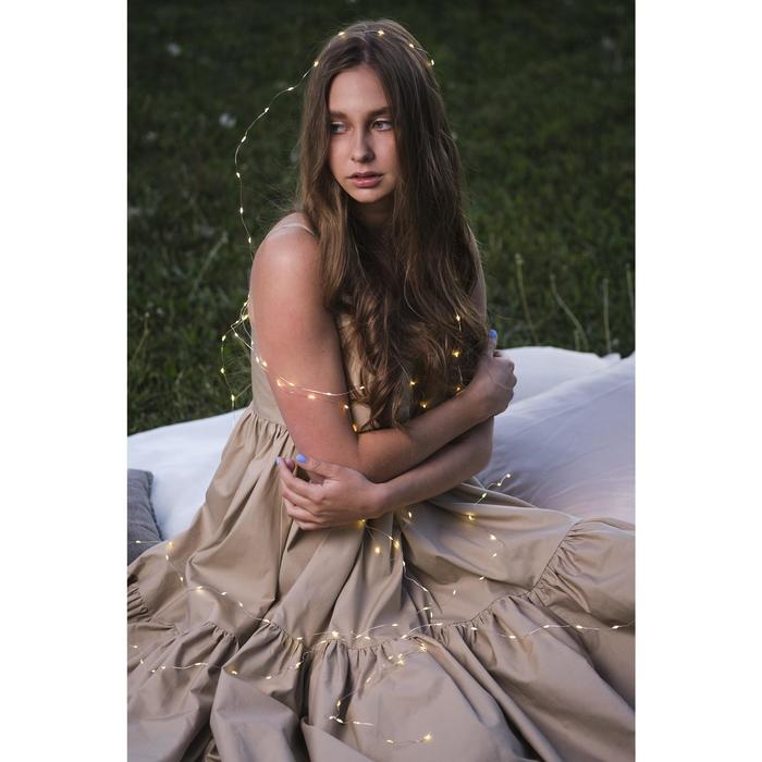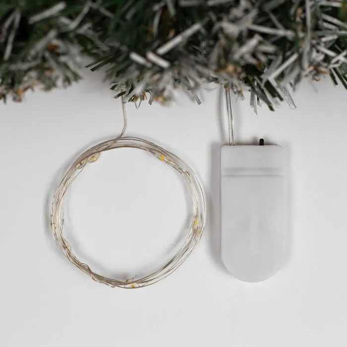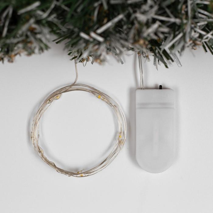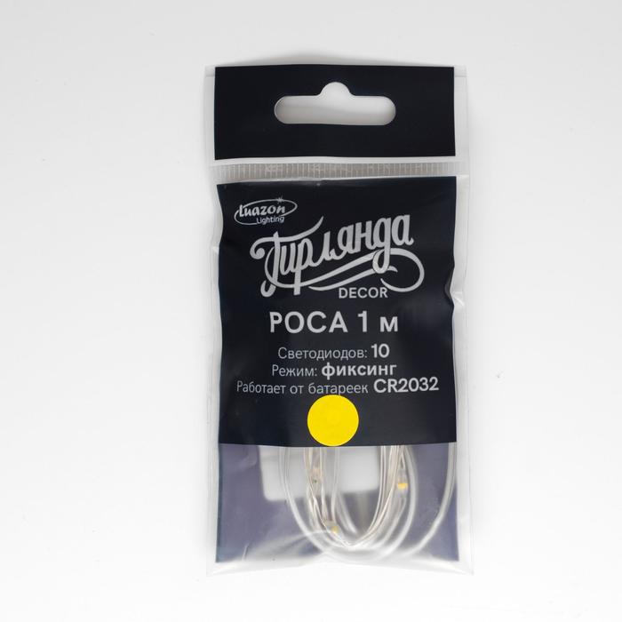 Гирлянда «Нить» 1 м роса, IP20, серебристая нить, 10 LED, свечение жёлтое, CR2032х2