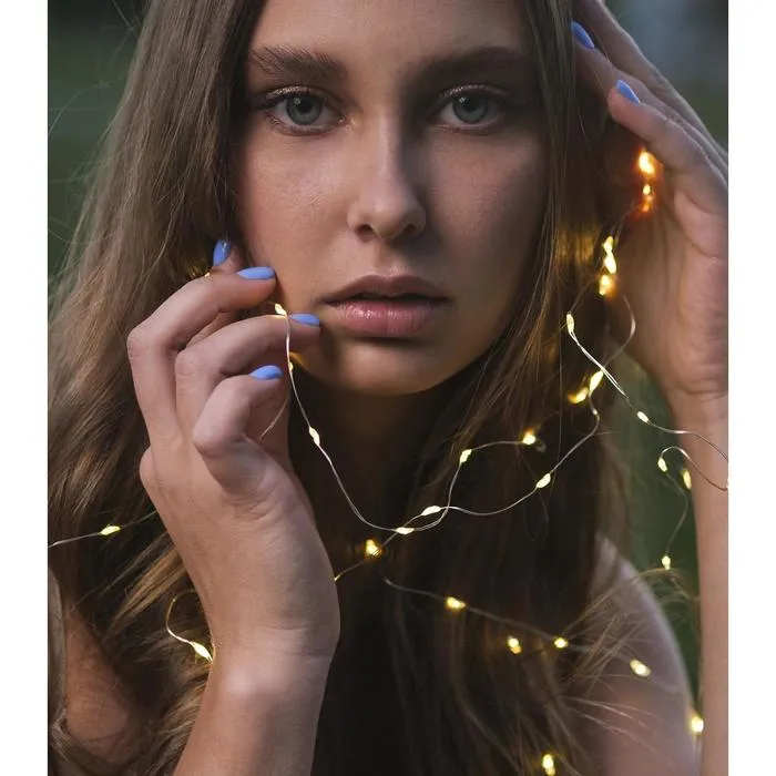 Это тонкий невидимый провод с миниатюрными светодиодами лампочками, которые создают эффект мерцающих капель росы. Лампочки расположены на гибкой проволоке, что позволяет свободно формировать различные формы и украшать ими любые поверхности: окна, мебель, растения, элементы декора. Серия ROSA. Тонкая проволока с лаковой изоляцией. Микродиод в эпоксидной смоле IP 20. Устройство защищено от твердых объектов диаметром больше 12,5 мм и не защищено от проникновения воды. цвет свечения: мульти, белый, тёплый белый, синий, фиолетовый, жёлтый, зеленый, красный. Цвет нити: серебристый, медный, зеленый, черный.