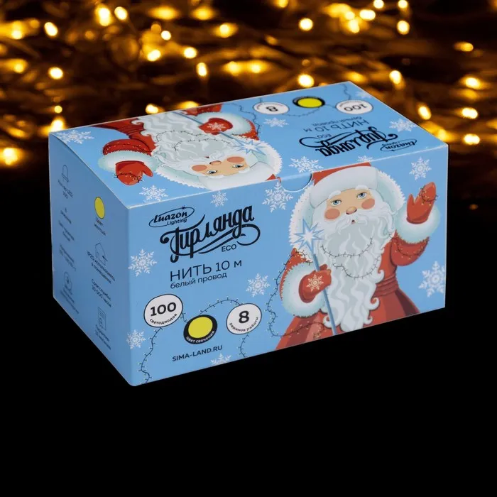 Гирлянда «Нить» 10 м, IP20, белая нить, 100 LED, 8 режимов, 220 В, свечение жёлтое — Характеристики