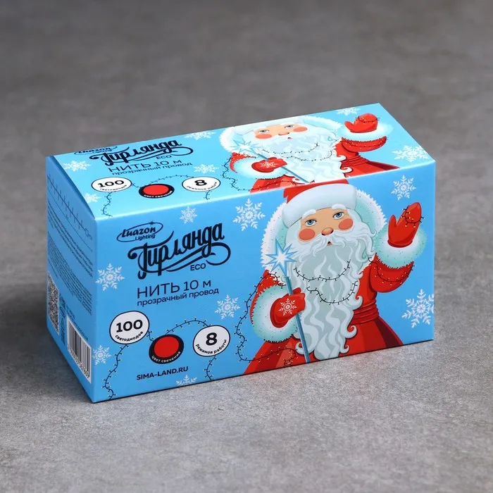 Гирлянда «Нить» 10 м, IP20, прозрачная нить, 100 LED, 8 режимов, 220 В, свечение красное — Характеристики