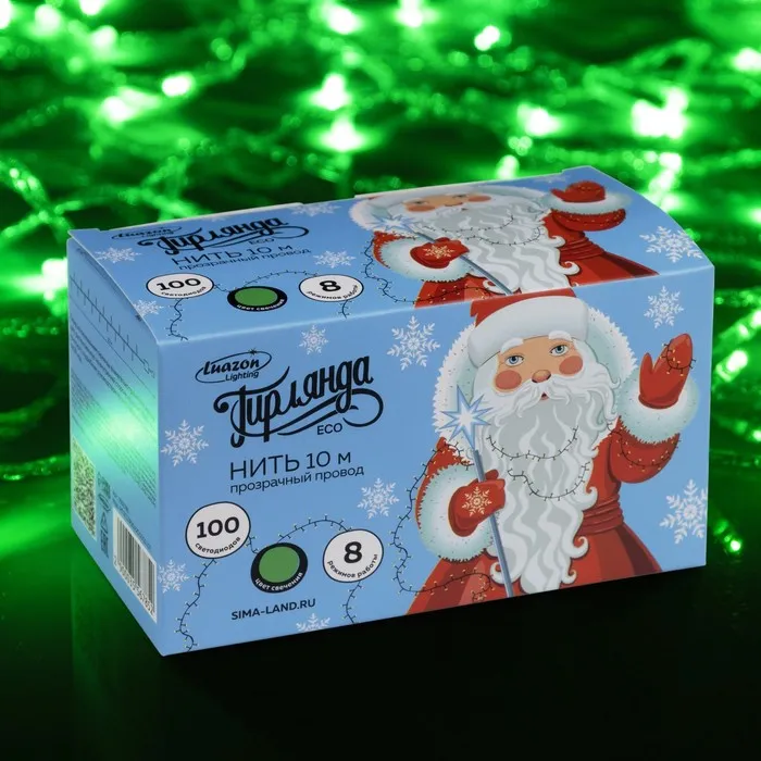 Гирлянда «Нить» 10 м, IP20, прозрачная нить, 100 LED, 8 режимов, 220 В, свечение зелёное — Характеристики