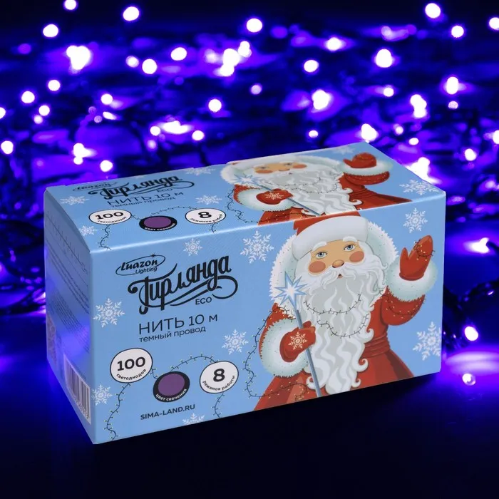 Гирлянда «Нить» 10 м, IP20, тёмная нить, 100 LED, 8 режимов, 220 В, свечение фиолетовое — Характеристики