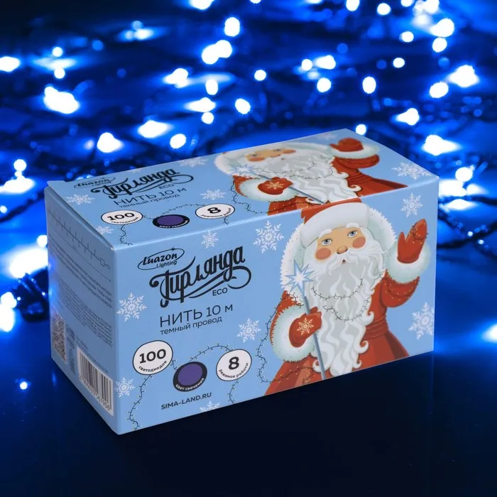 Гирлянда «Нить» 10 м, IP20, тёмная нить, 100 LED, 8 режимов, 220 В, свечение синее — Характеристики