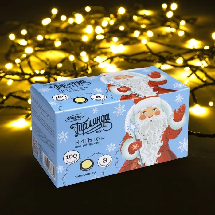Гирлянда «Нить» 10 м, IP20, тёмная нить, 100 LED, 8 режимов, 220 В, свечение тёплое белое — Характеристики