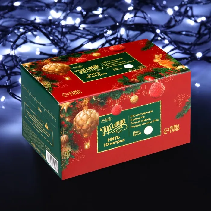 Гирлянда «Нить» 10 м, IP44, тёмная нить, 100 LED, свечение белое, 8 режимов, 220 В — Характеристики
