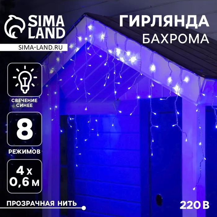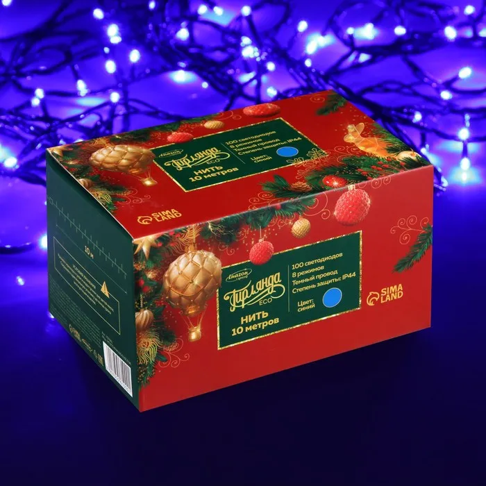Гирлянда «Нить» 10 м, IP44, тёмная нить, 100 LED, свечение синее, 8 режимов, 220 В — Характеристики