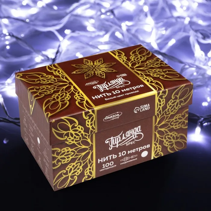 Гирлянда «Нить» 10 м, IP44, УМС, белая нить, 100 LED, свечение белое, 220 В — Характеристики