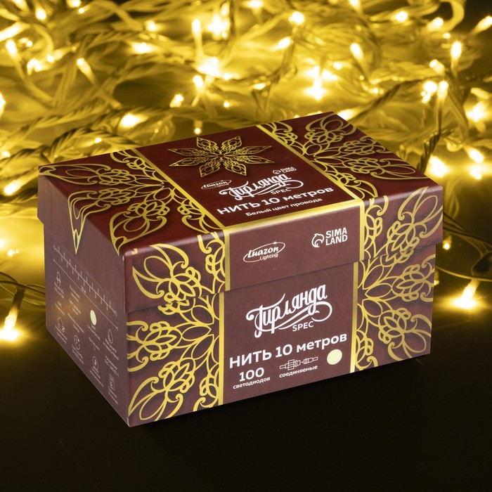 Гирлянда «Нить» 10 м, IP44, УМС, белая нить, 100 LED, свечение тёплое белое, 220 В — Характеристики
