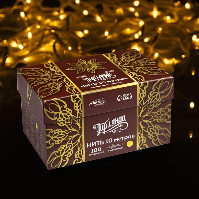 Гирлянда «Нить» 10 м, IP44, УМС, белая нить, 100 LED, свечение жёлтое, 220 В — Характеристики