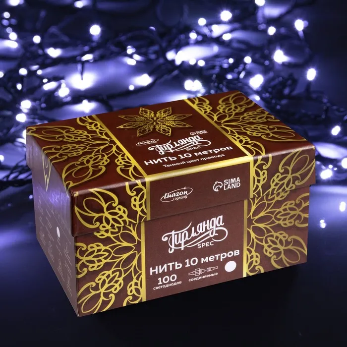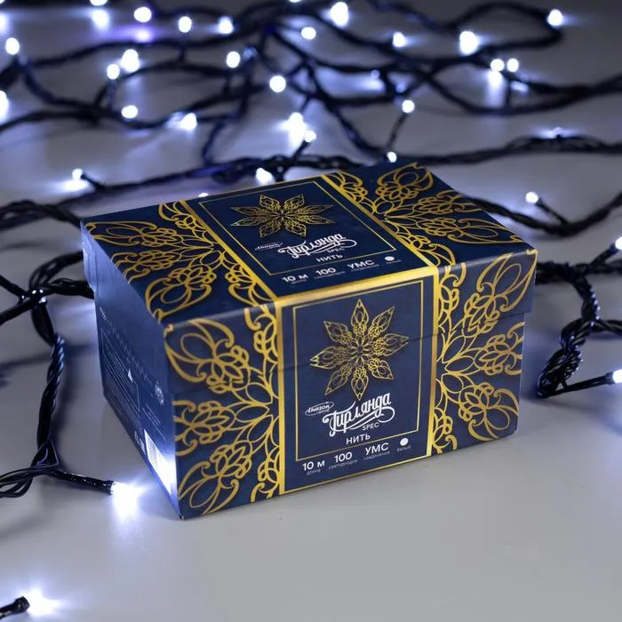 Гирлянда «Нить» 10 м, IP44, УМС, тёмная нить, 100 LED, свечение белое, мерцание белым, 220 В — Характеристики