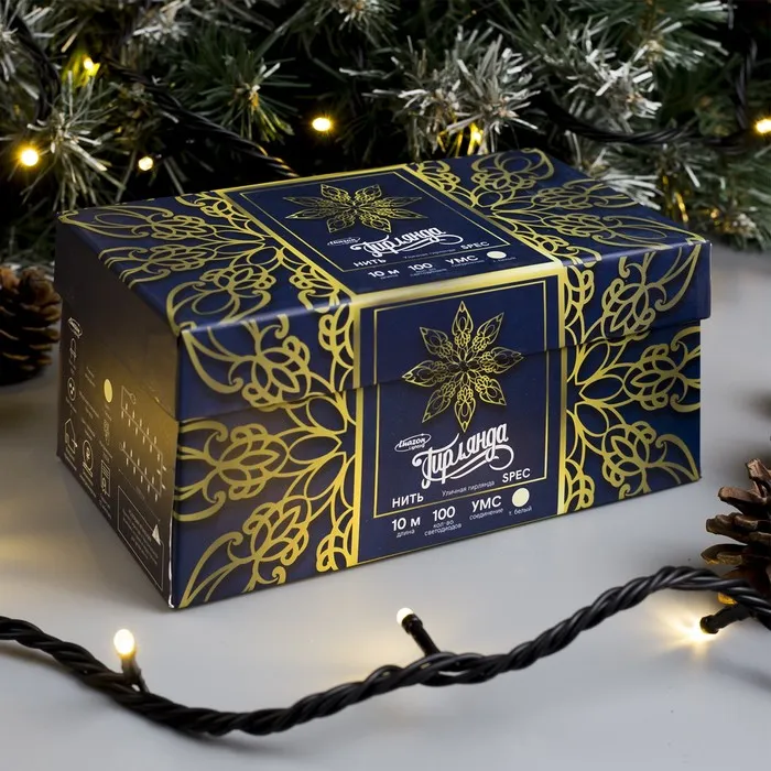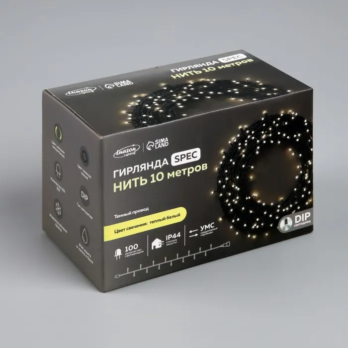 Гирлянда «Нить» 10 м, IP44, УМС, тёмная нить, 100 LED, свечение тёплое белое, мерцание белым, 220 В — Характеристики