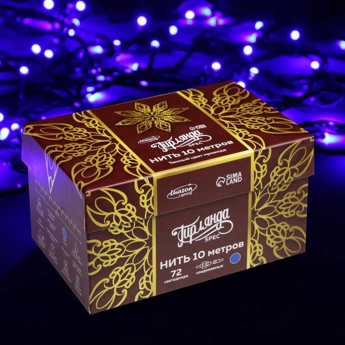 Гирлянда «Нить» 10 м, IP44, УМС, тёмная нить, 72 SMD-LED, свечение синее, 220 В — Характеристики