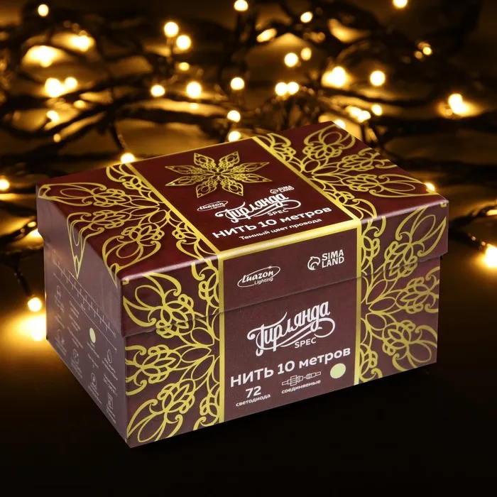 Гирлянда «Нить» 10 м, IP44, УМС, тёмная нить, 72 SMD-LED, свечение тёплое белое, 220 В — Характеристики
