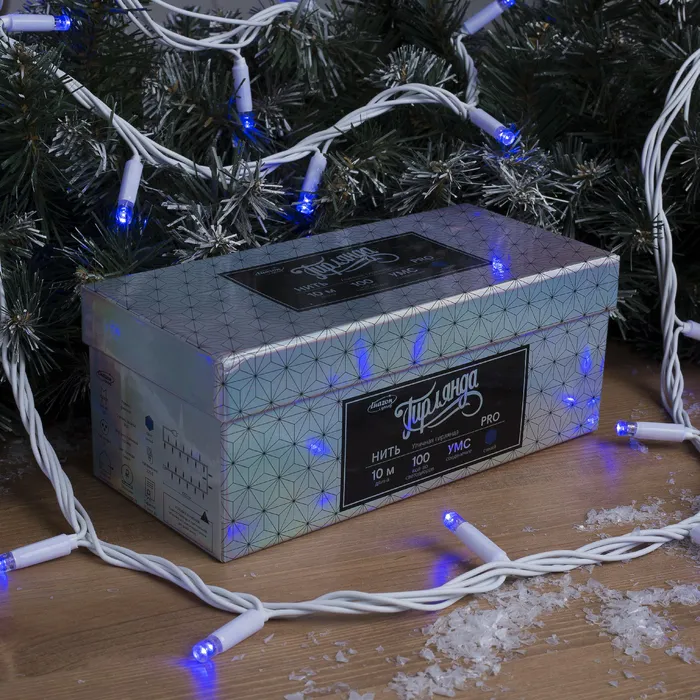 Гирлянда «Нить» 10 м, IP65, УМС, белая нить, 100 LED, свечение синее, 220 В — Характеристики