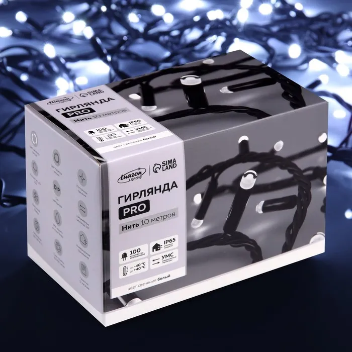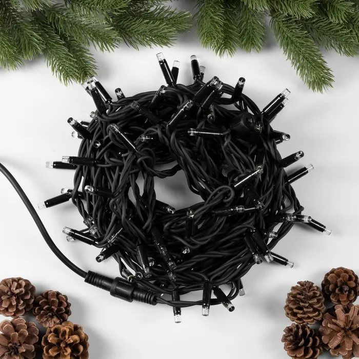 Гирлянда «Нить» 10 м, IP65, УМС, тёмная каучуковая нить, 100 LED, свечение белое, 220 В — Характеристики